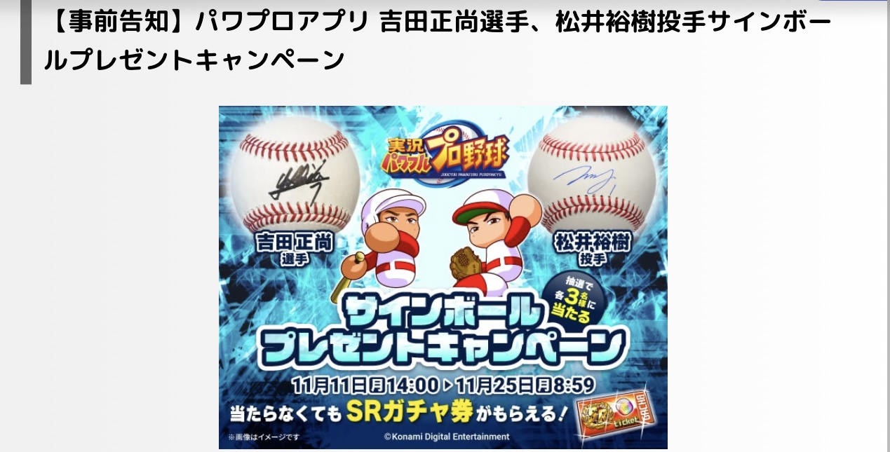 【パワプロアプリ】11月11日から松井裕樹、吉田正尚コラボ?