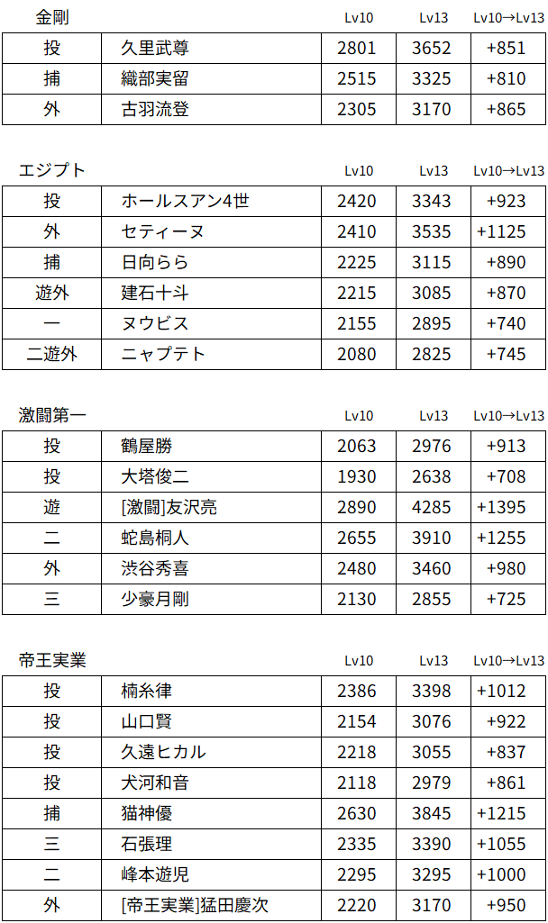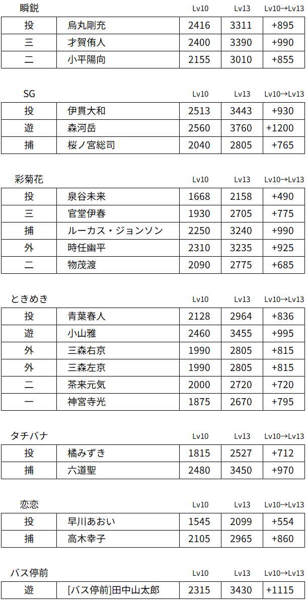 初期スカウト・1回戦・2回戦でスカウトした選手ならレベルを上げやすいので最終的にLv.13に到達するかもしれないぞ!