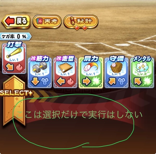 【パワプロアプリ】練習カードの下の矢印がある場所をスワイプすればほぼ暴発しないかと【赤壁高校】
