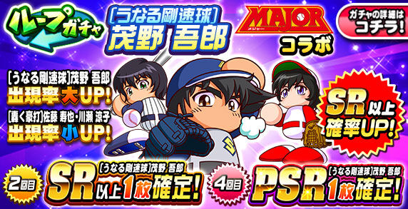 【パワプロアプリ速報】ループガチャ [うなる剛速球]茂野 吾郎 MAJORコラボキタ━━━━(゚∀゚)━━━━!!【公式】(矢部速報)